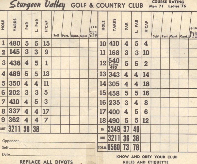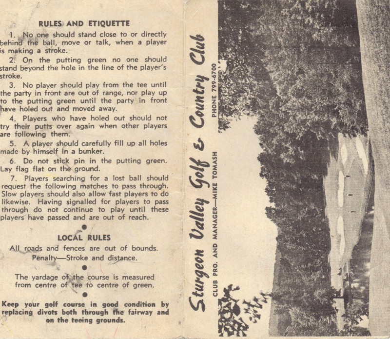 Even with the 1967 re-construction of the course the flooding of the Sturgeon River often caused problems in the spring. A step toward control of this problem was taken in 1971-72 when a dyke was constructed along the edge of the present number nine fairway.
